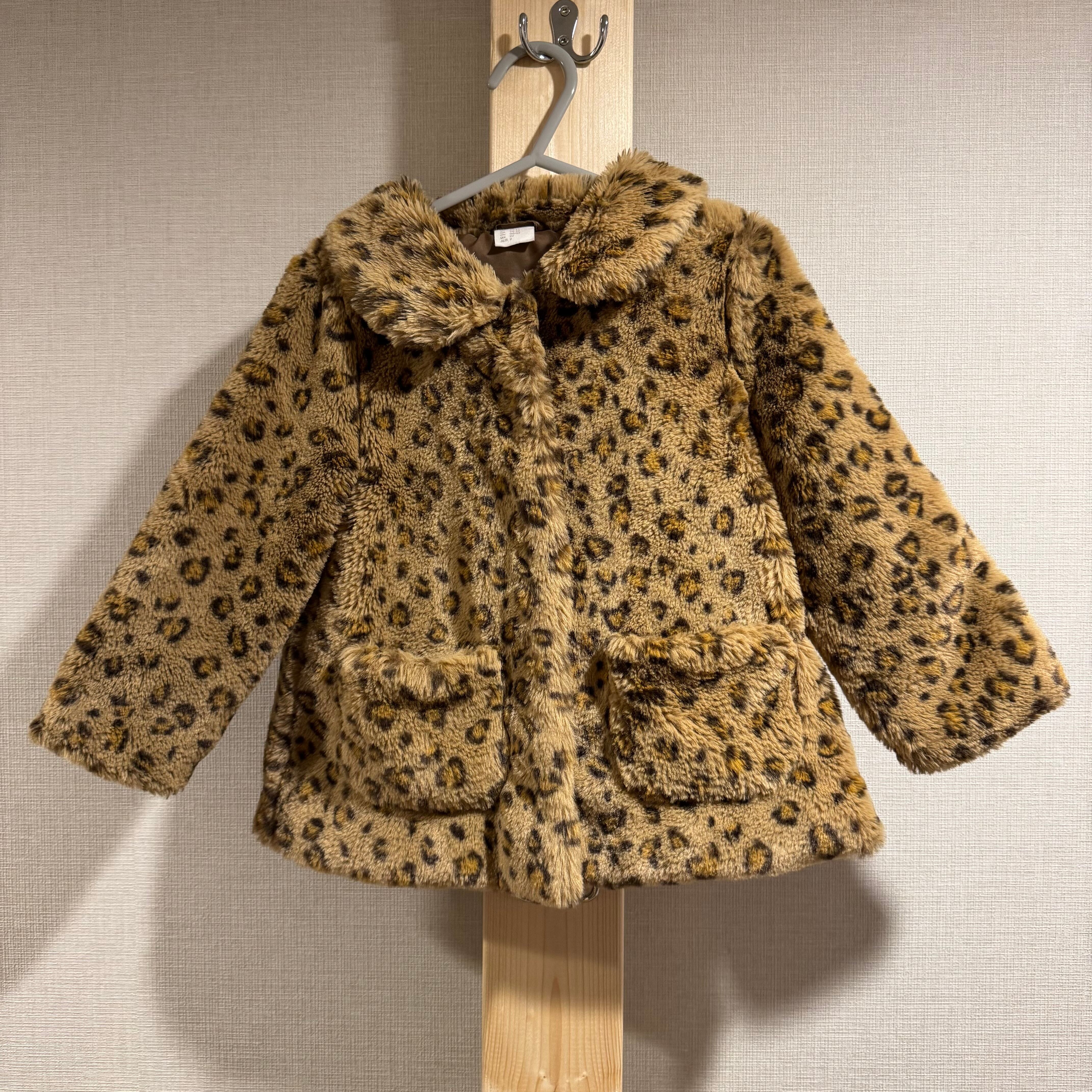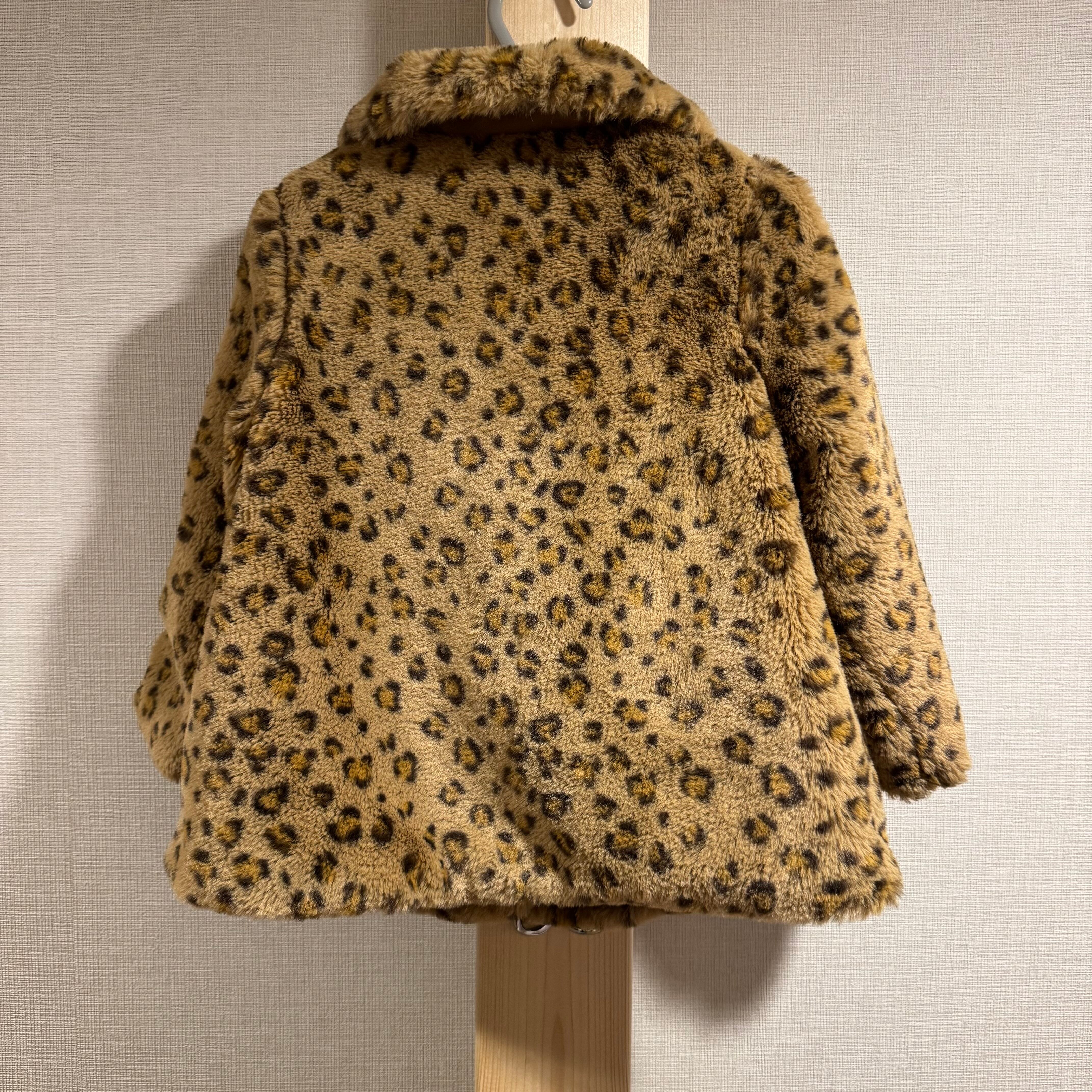 【90cm】ヒョウ柄襟付きファーコート